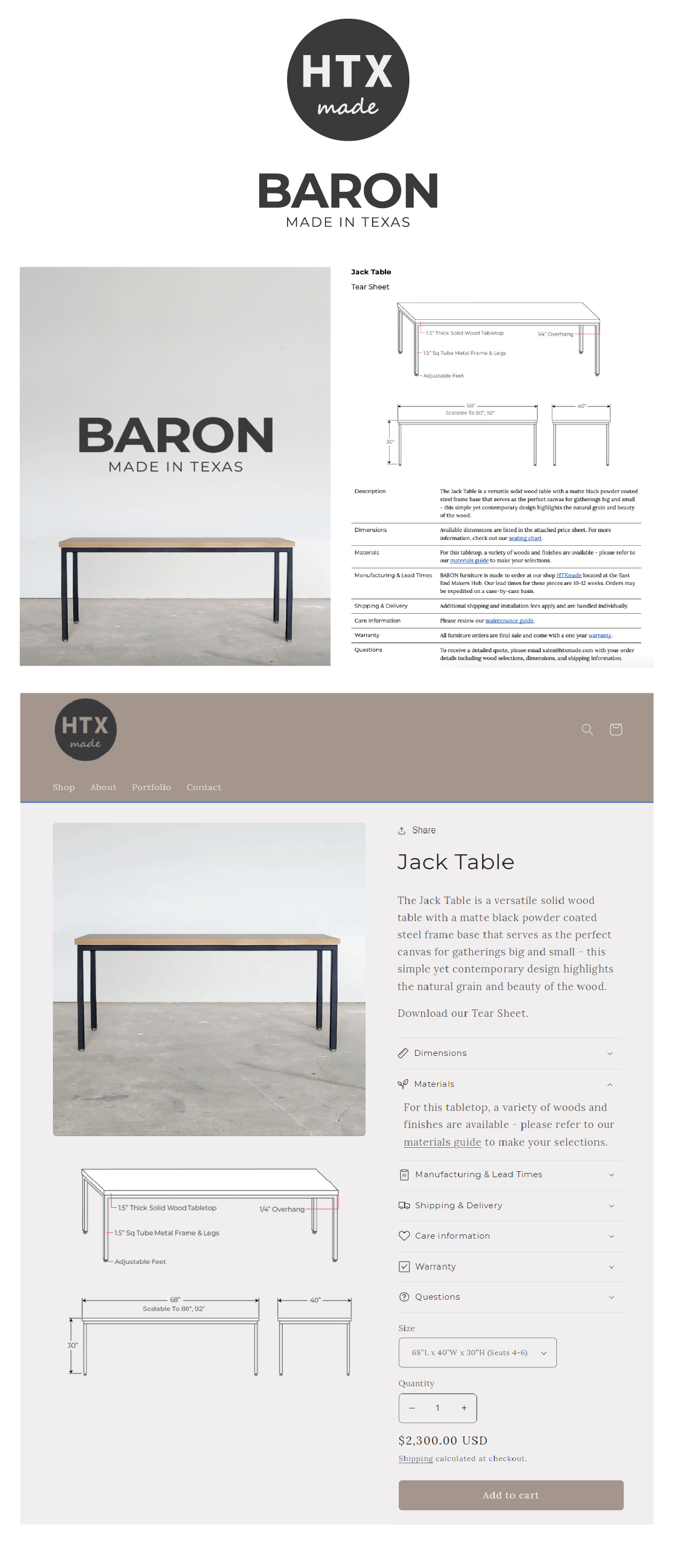 CAD, Branding, Lookbook, Website and Custom Furniture Projects for HTXmade & BARON (2022)